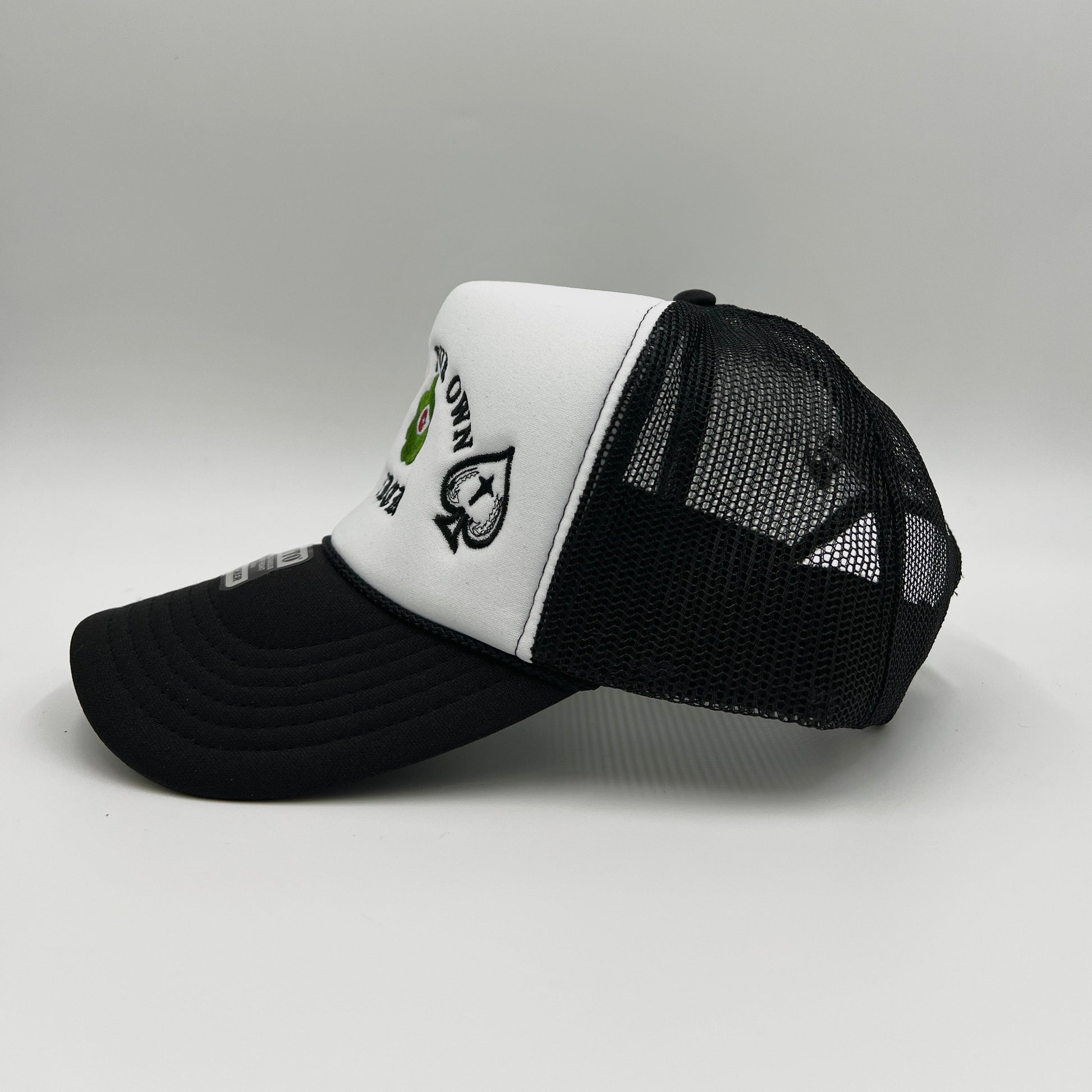 Make a bold fashion statement with this embroidered trucker foam hat. MADE IN THE USA. This hat is the perfect accessory for any outfit. Designed to be a daily essential.