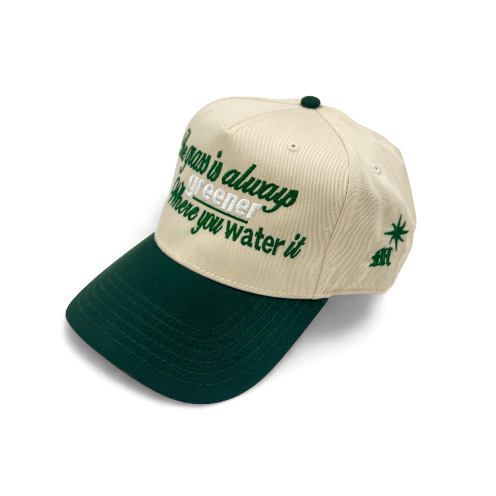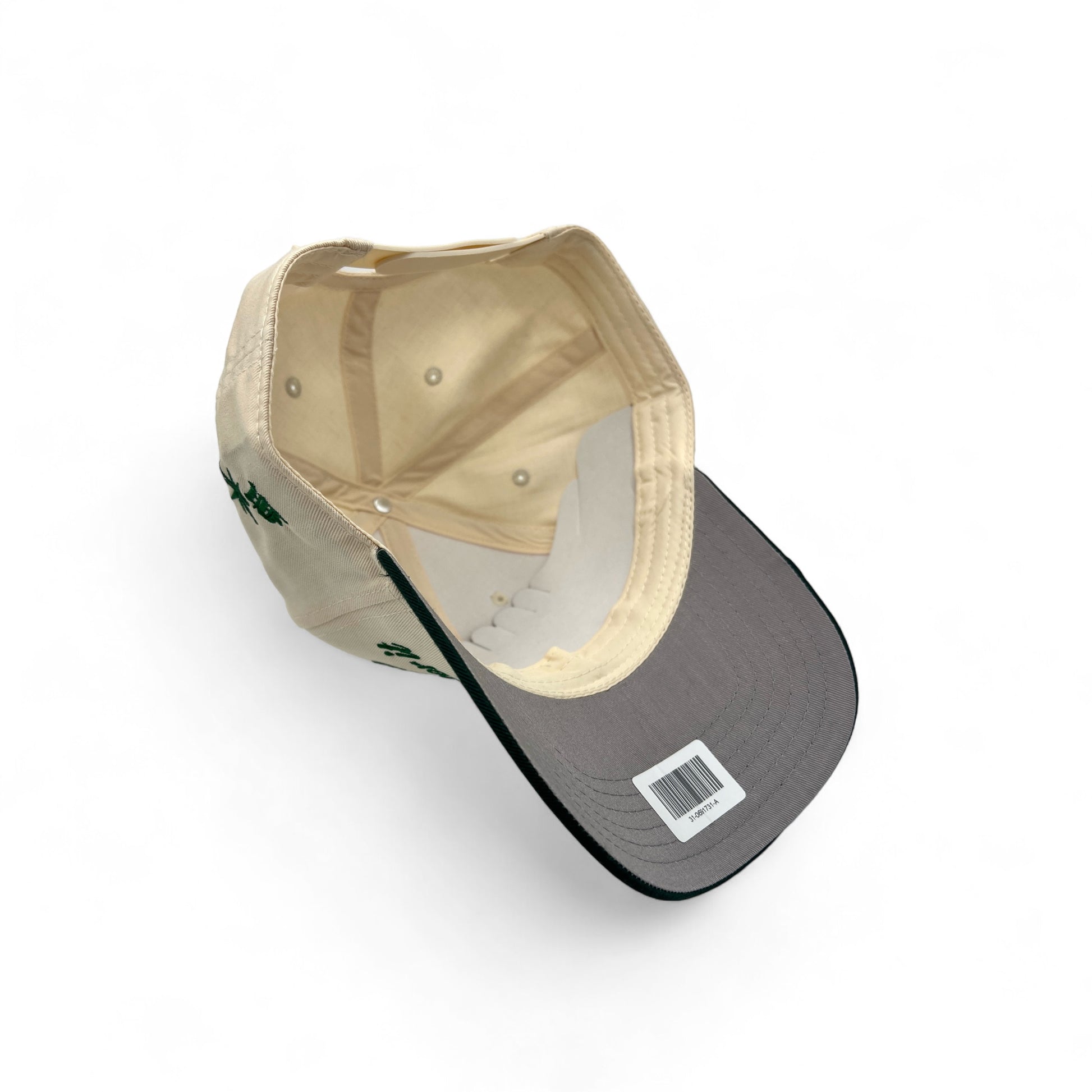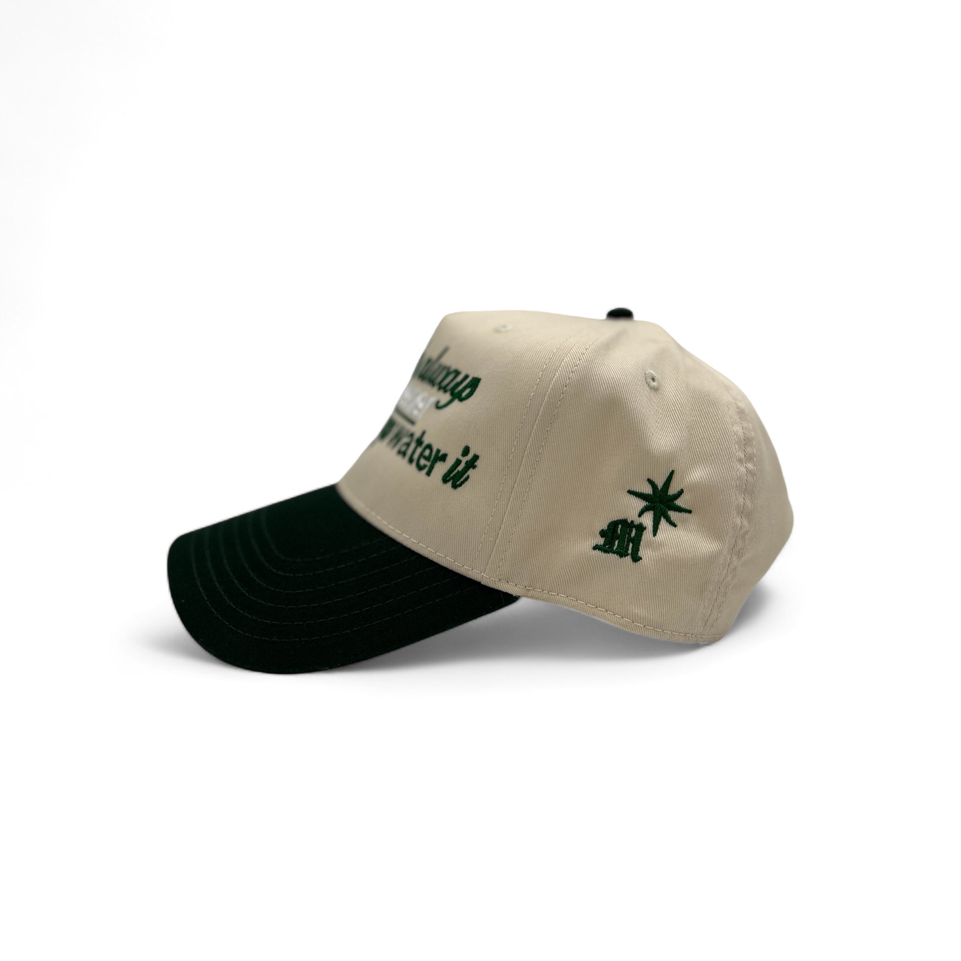 Dark green and cream color combination. Make a bold fashion statement with this embroidered snapback hat. MADE IN THE USA. This hat is the perfect accessory for any outfit. Designed to be a daily essential.